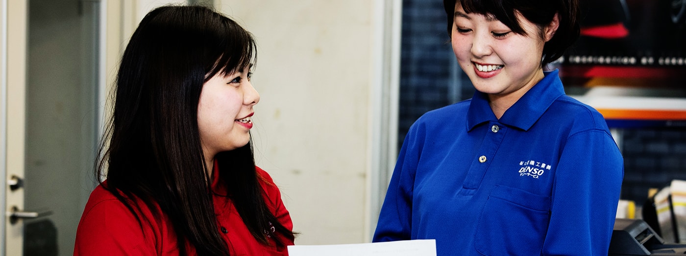 社内は女性社員が多く、みんな何でも話せる間柄なので、とても働きやすい環境だと思います。社長も気さくな人で、社長室ではなく、いつも私たち営業の部屋にいます。残業は当番制で基本、定時に帰宅できるし、忙しい時は、みんなで助け合っています。明るく楽しく元気に働きたい人にはぴったりだと思います。